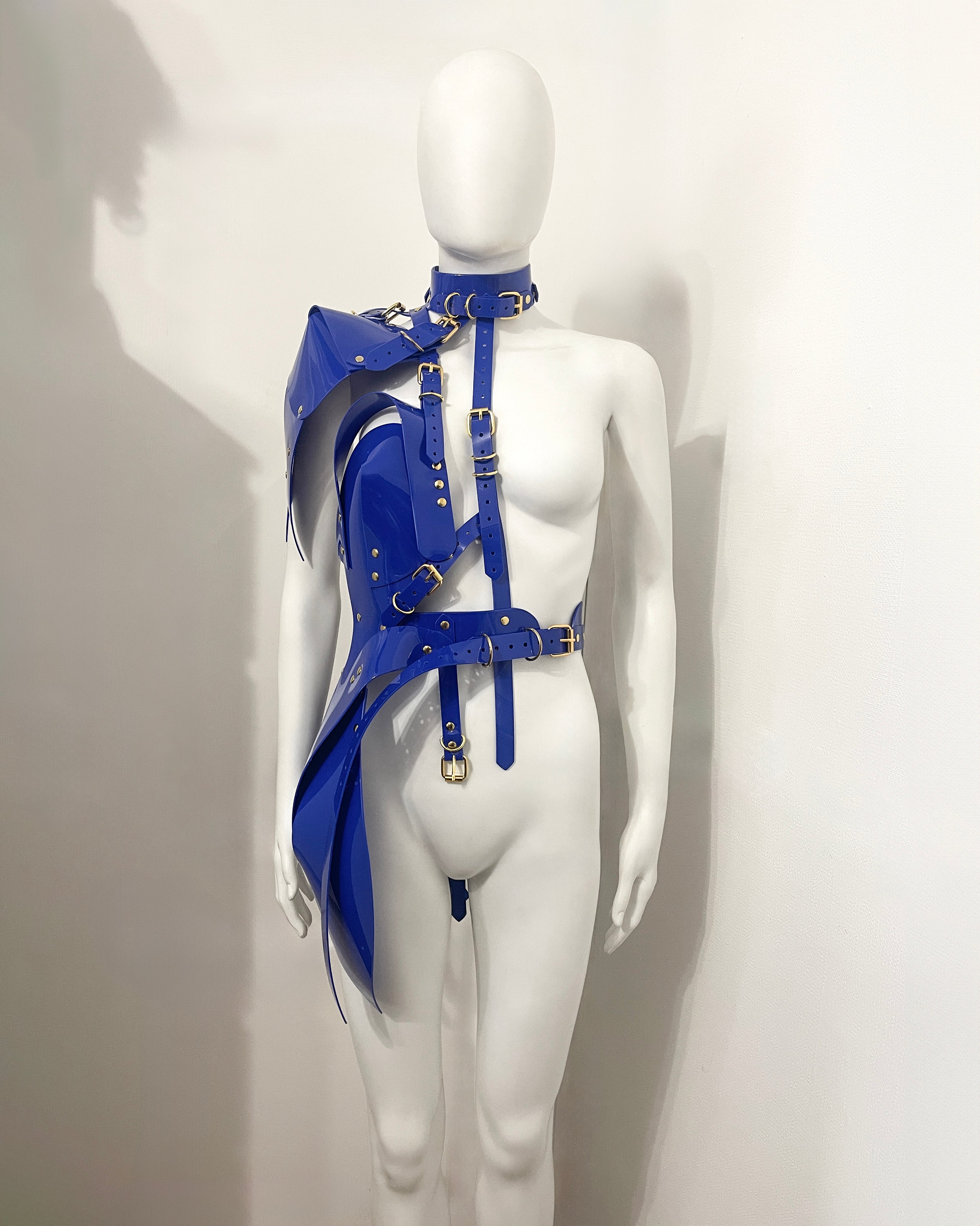 One of my favourite pieces the Half dress. Either for the super confident or as a perfect styling pieces to go with anything in your wardrobe. Absolute must have. A custom version of this was immortalised by the truly incredible Peaches on her world tour. The dress is available in two styles shown or in full freestyle custom upon request in any of the stunning colours we offer in our signature vegan vinyl and of course made to order only. Fully adjustable. Please select which style you prefer along with chosen colour and in the notes let us know which side of the body you would prefer exposed.