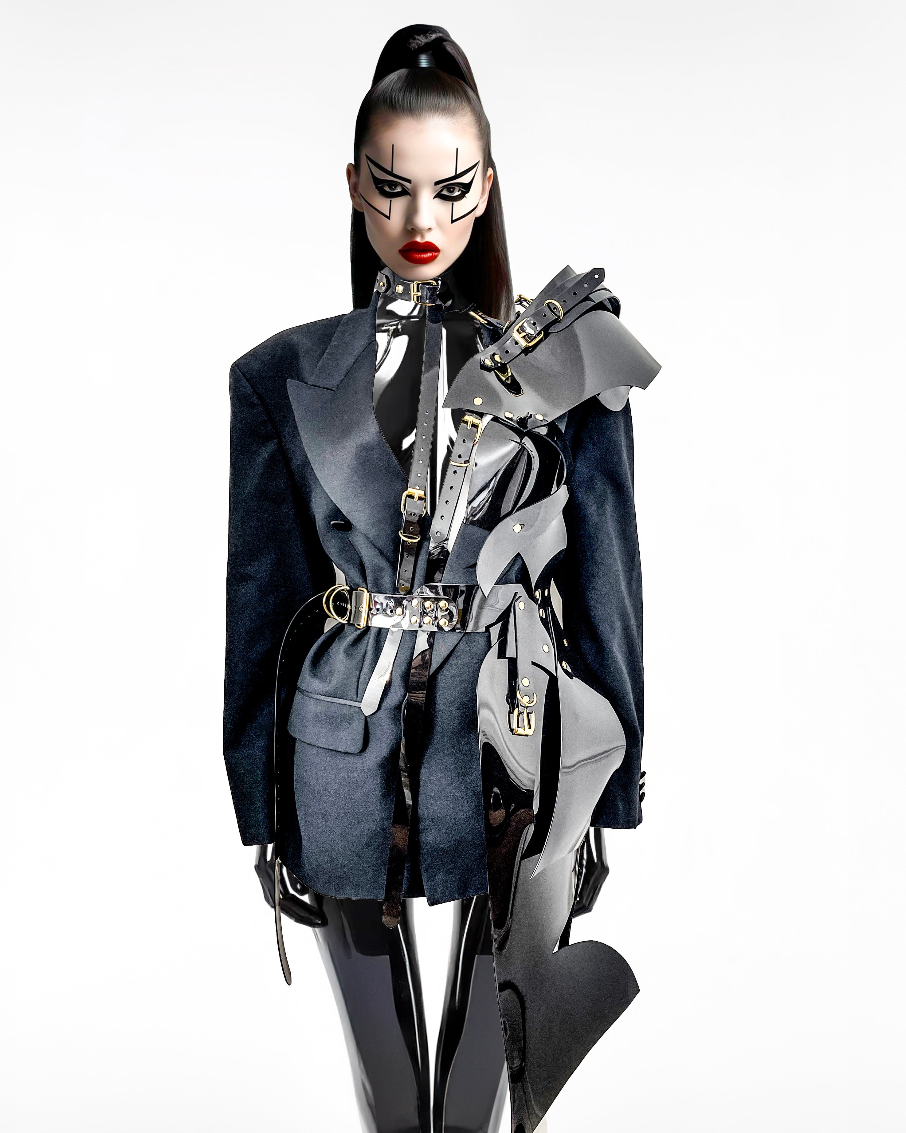 Also shown styled with the white star net coat available separately or Classic oversized tailoring. Also worn by the incredible recording artist Peaches on there world tour.