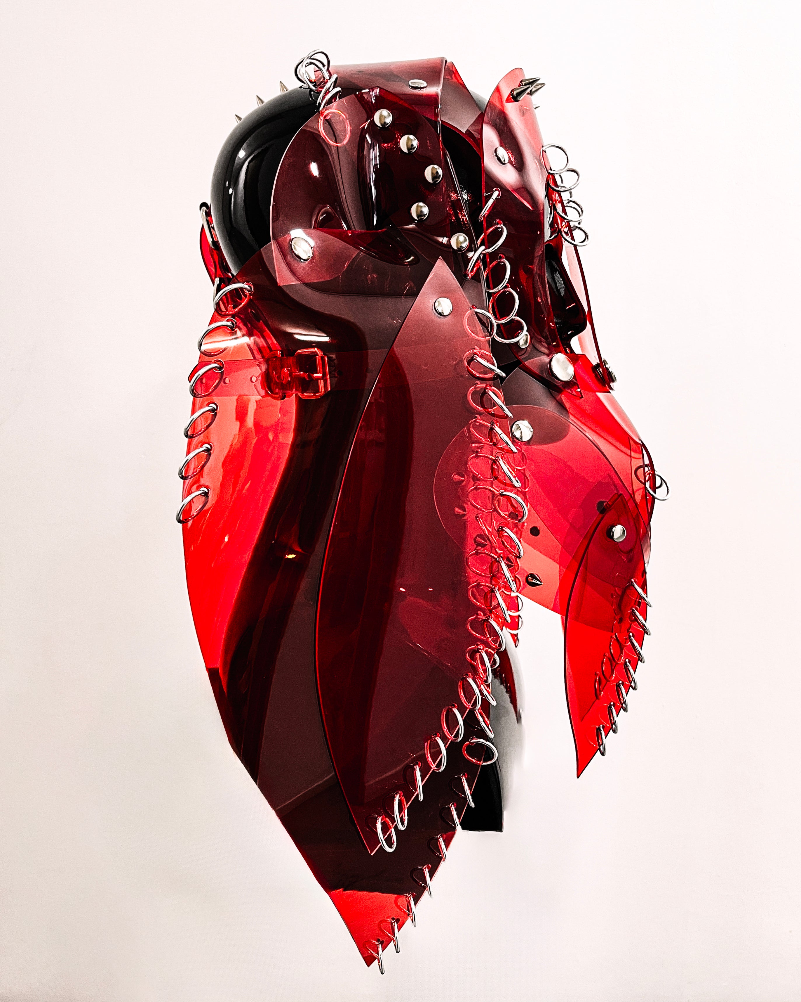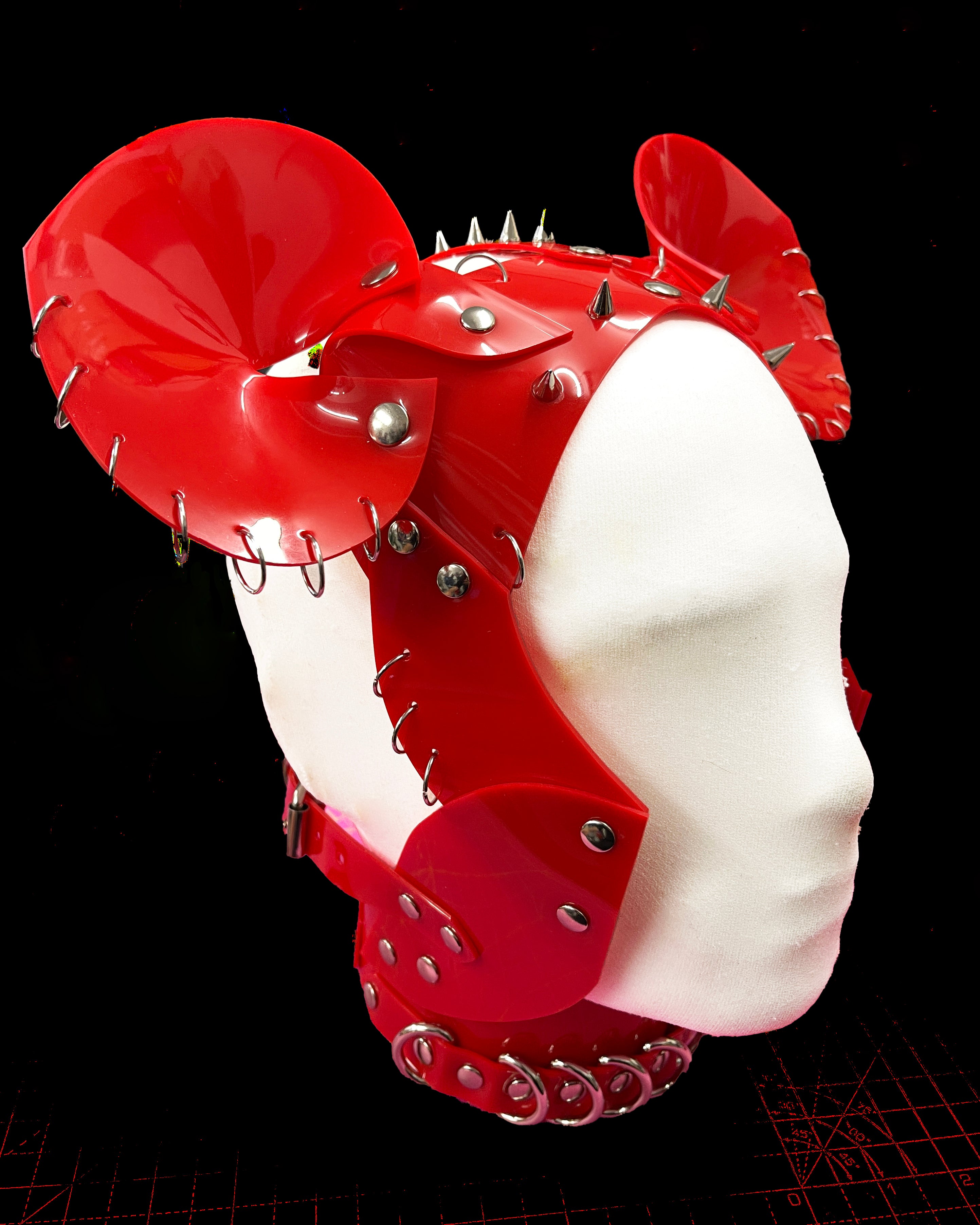 The Jivomir Domoustchiev Spirit Animal Headpiece embodies the purity of the  'Spirit Animals / Shape Shifters' collection.  Each Head Piece reflects the morphing of different animals as they transform into human beings. Available from a selection the customer can choose which headpiece they would like and then pick the vivid colour they would like there headpiece created in both solid and transparent colours. Crafted in vegan vinyl.  Please add colour choice comments upon checkout. All Jivomir Domoustchiev designs are lovingly made to order in our East  London atelier.  contact@jivomirdomoustchiev.com
